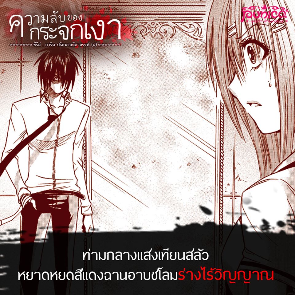 ใครที่รอคอยนิยายการิน ปริศนาคดีอาถรรพ์กันอยู่บ้างเอ่ย? กลับมาตามคำเรียกร้องแล้วนะคะ กับเล่ม 4 ความลับของกระจกเงา มาพร้อมกับปกใหม่สวยๆ และคอลัมน์สุดพิเศษท้ายเล่ม! ![]() ... ท่ามกลางแสงเทียนสลัว หยาดหยดสีแดงฉานอาบชโลมร่างไร้วิญญาณ